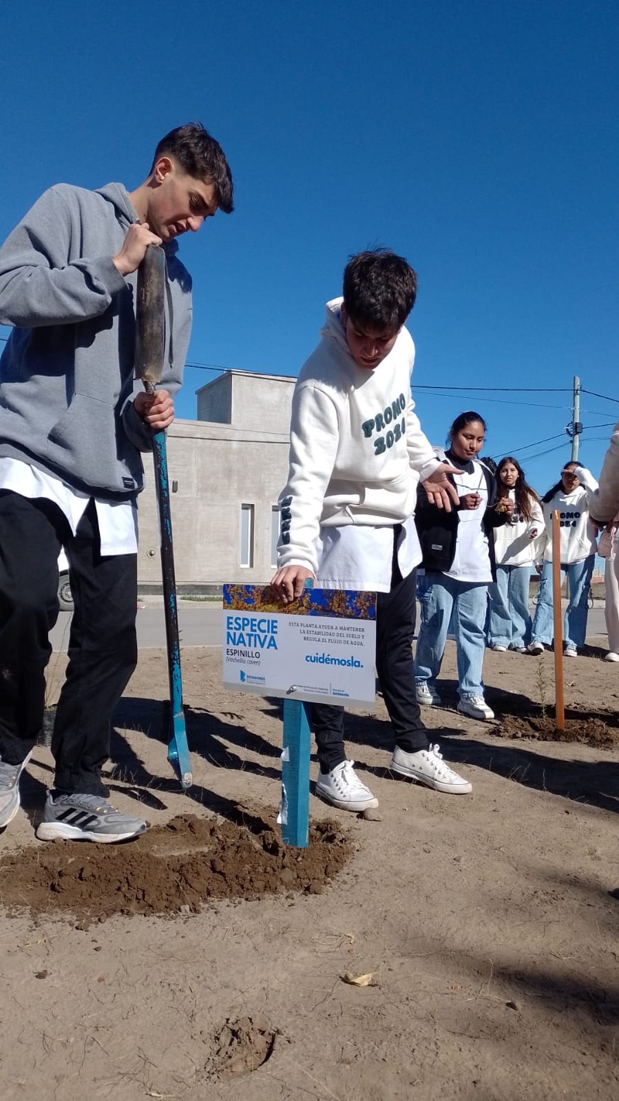 Luego, junto con la empresa EDES S.A, plantaron 10 árboles nativos en el boulevard Patagones de la localidad.