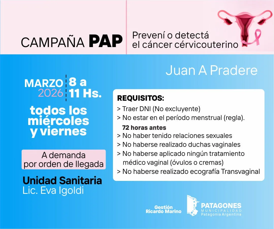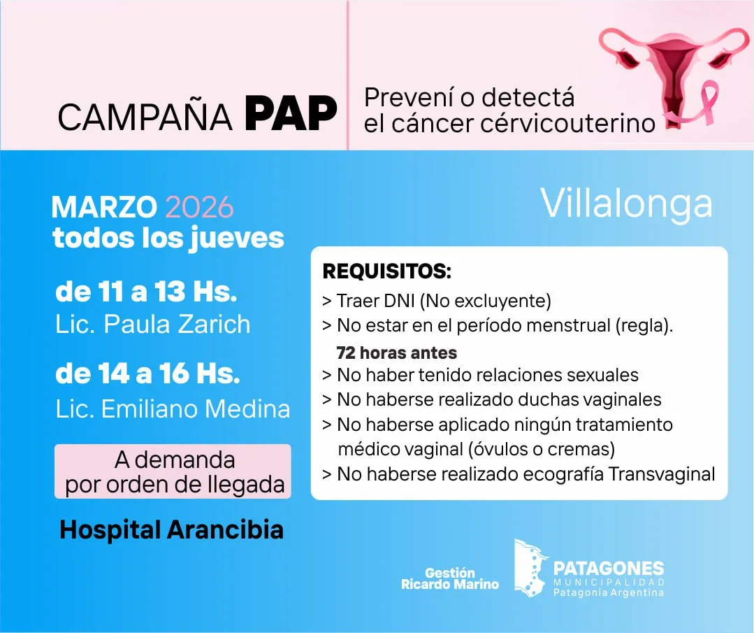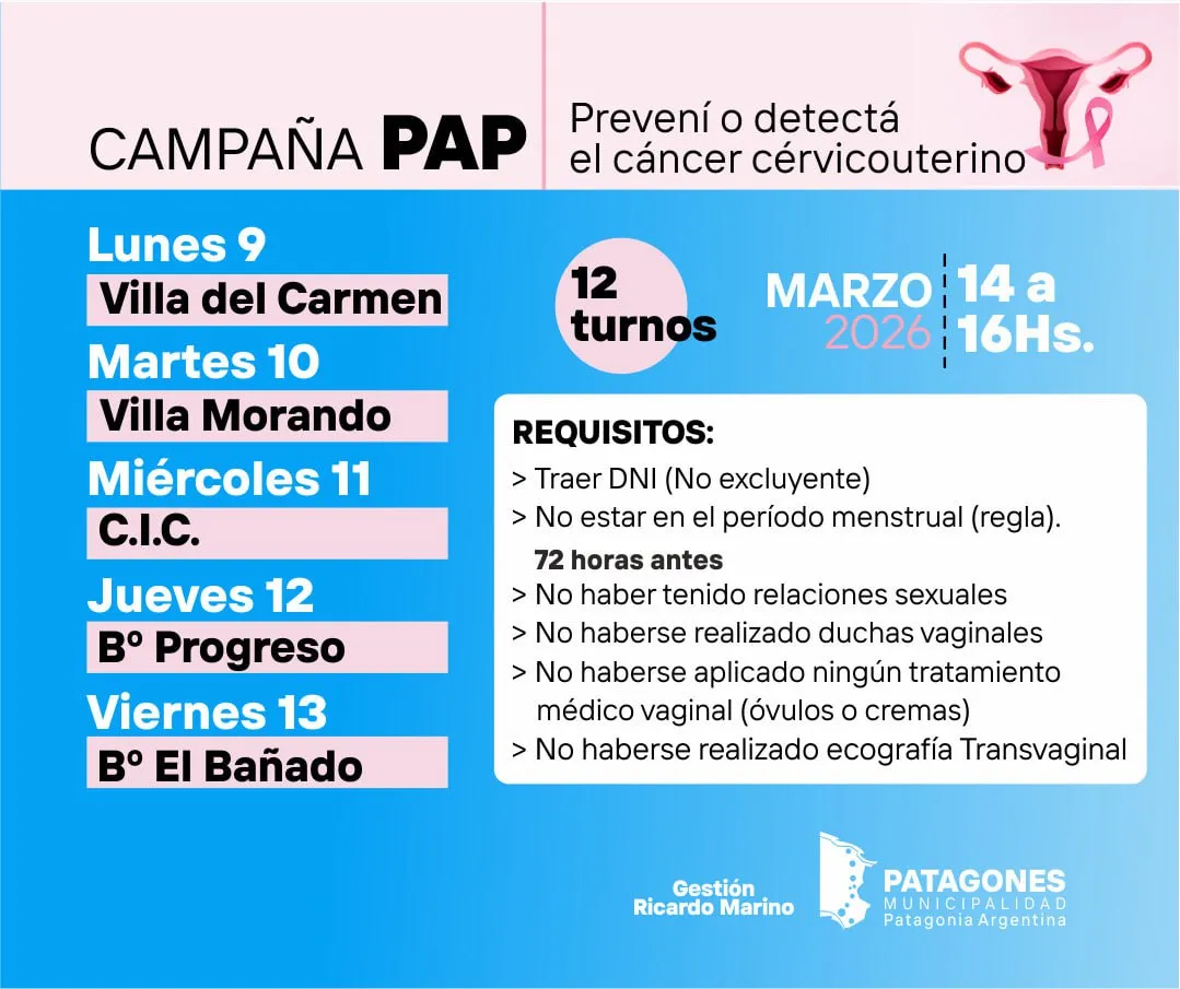 Durante todo el mes de marzo se realizarán estudios de PAP en distintas localidades del distrito: