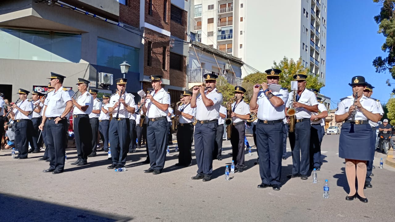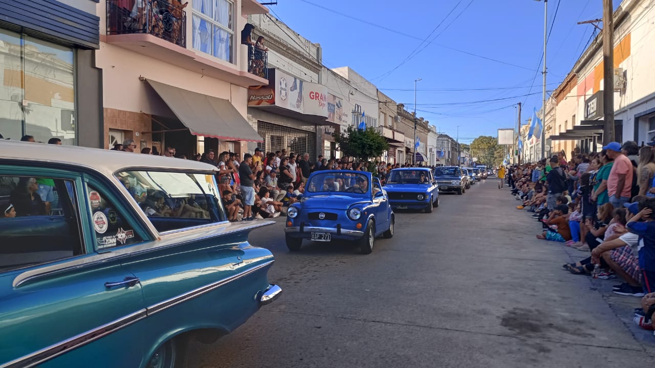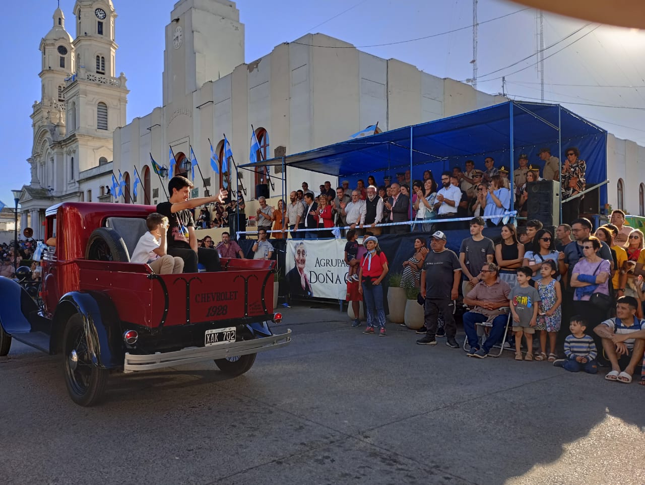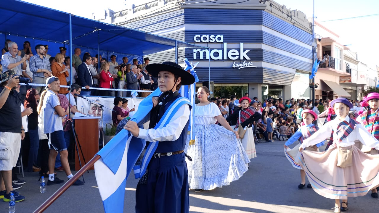 Inmediatamente flamearon las banderas de las distintas instituciones educativas del distrito, seguidas por las instituciones de la Comarca, entre ellas; colectividades, fuerzas de seguridad, organizaciones de la comunidad, clubes deportivos, instituciones que presentaron su flota vehicular y recursos logísticos y los infaltables autos clásicos.