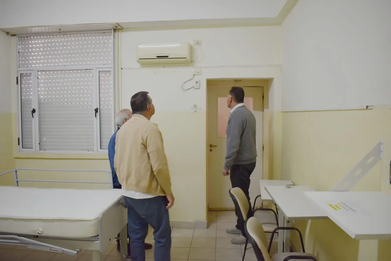 En primer término, acompañado por el equipo de la Secretaría de Salud, Dr. Martín Calvo, y la Secretaria de Planeamiento, Obras y Servicios Públicos, Arq. Pamela Baffoni, y el Subsecretario de Salud, Dr. Guillermo Wild, el jefe comunal visitó las obras de reacondicionamiento de salas de internación de clínica médica, traumatología y la mejora de desagüe pluvial en el hospital Ecay, realizadas con recursos municipales.