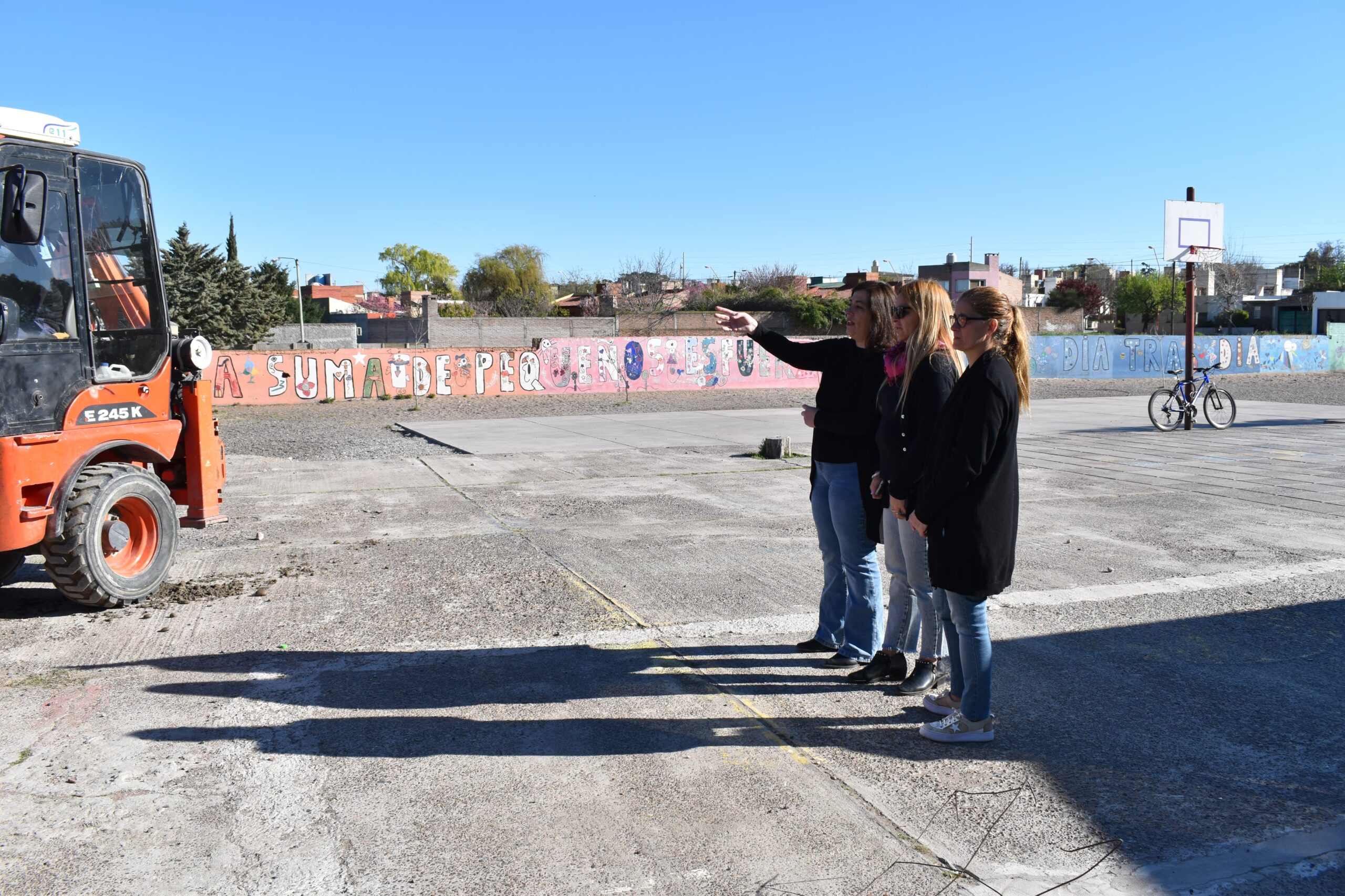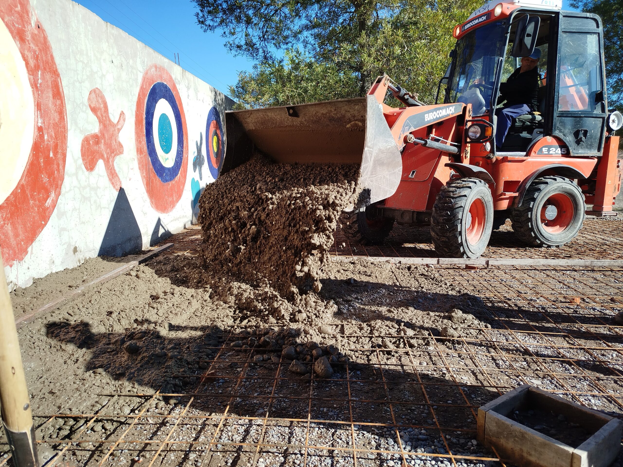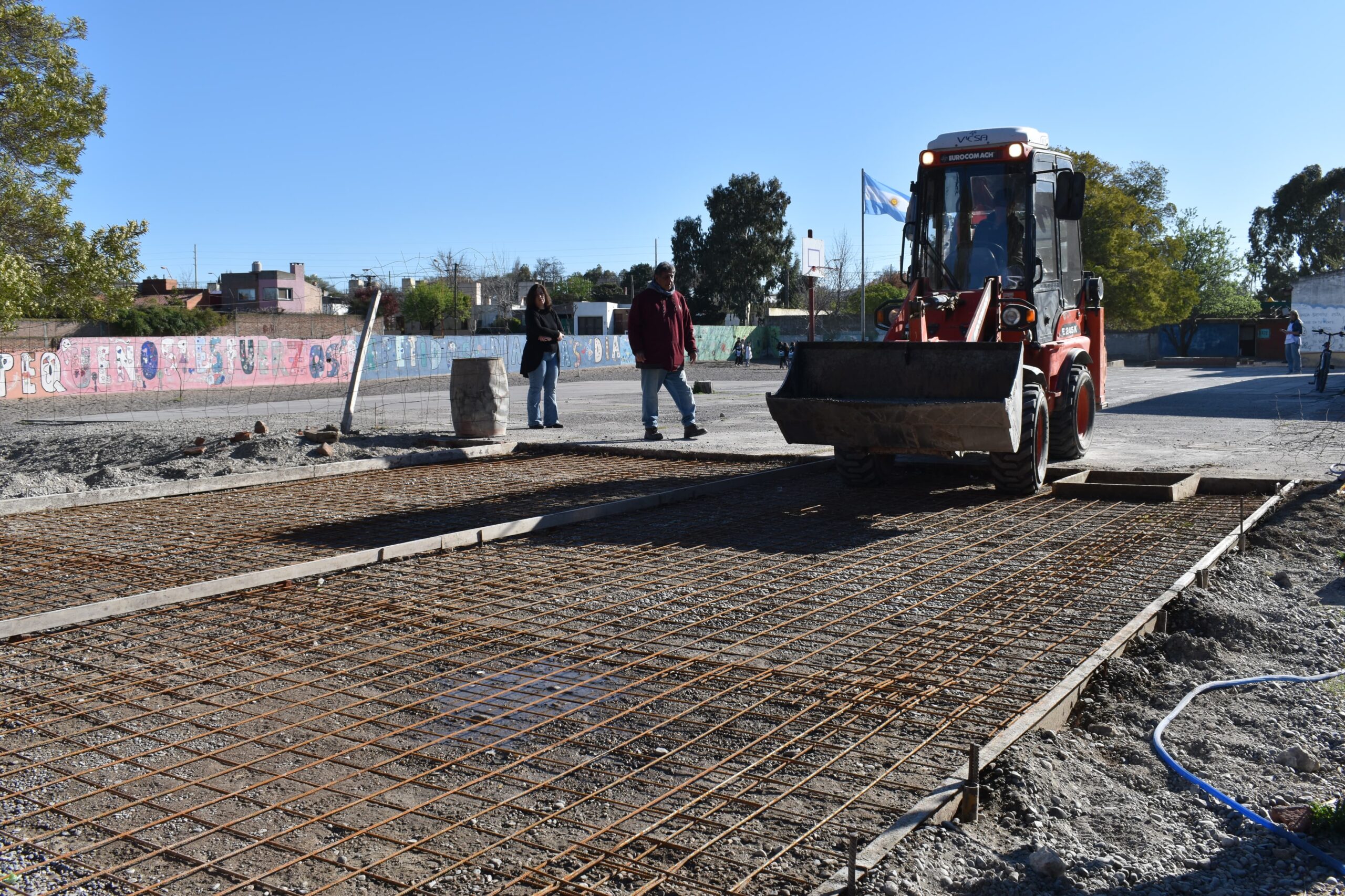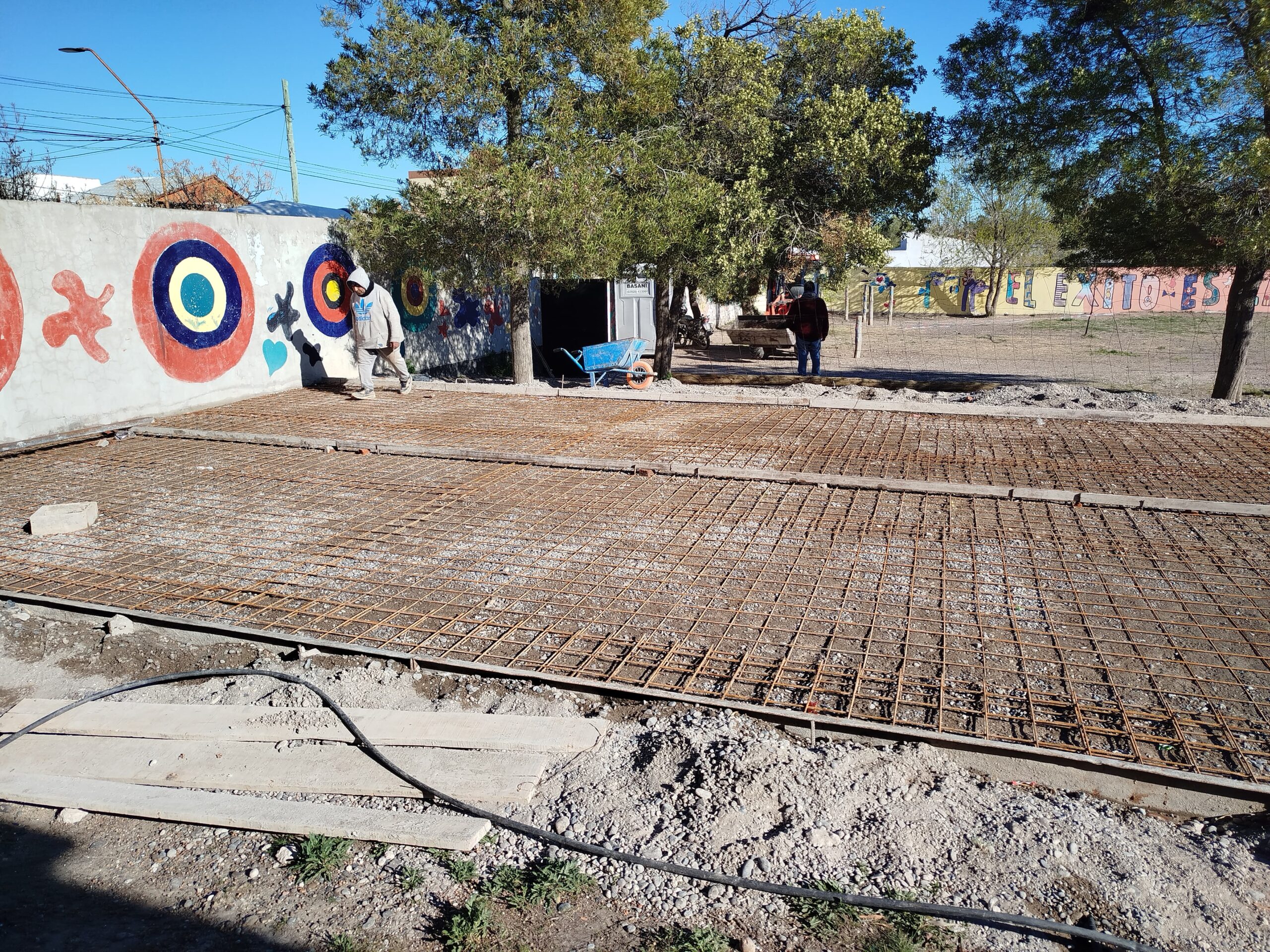La Secretaría de Planeamiento, Obras y Servicios Públicos y el Consejo Escolar informan que se ejecutó hoy, viernes, la platea de hormigón que servirá de base para la instalación de cuatro aulas modulares en la Escuela Primaria N° 14.