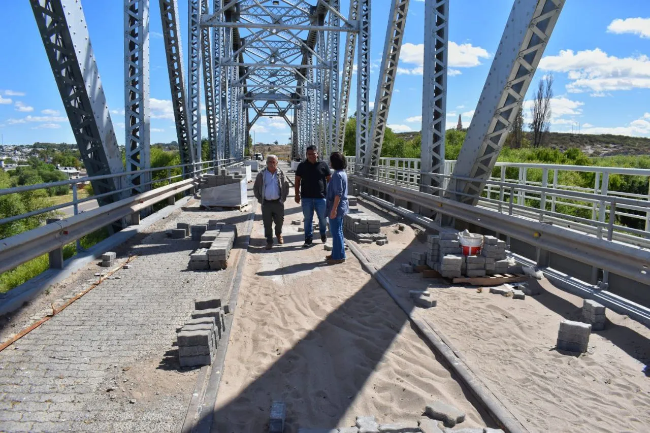 En el Puente Ferrocarretero continúan las tareas de restauración, que incluyen pintura de guardarraíl, colocación de nuevas luminarias y trabajos de hormigonado, mejorando la seguridad y puesta en valor de este espacio histórico.