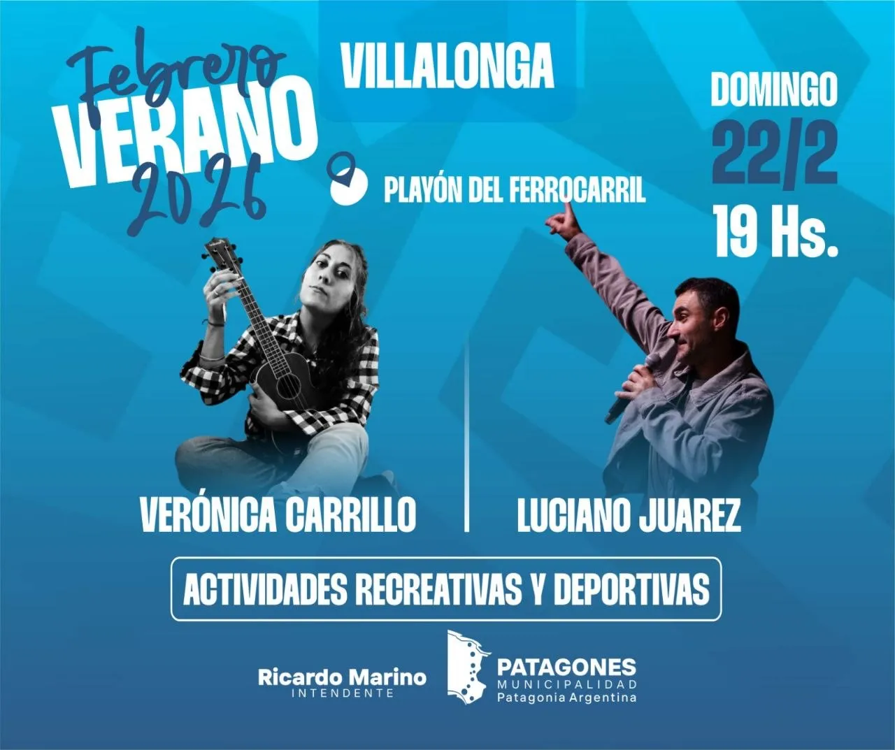 La propuesta cultural del verano continúa recorriendo las localidades del interior del distrito, con presentaciones musicales a cargo de Verónica Carrillo y Luciano Juárez.