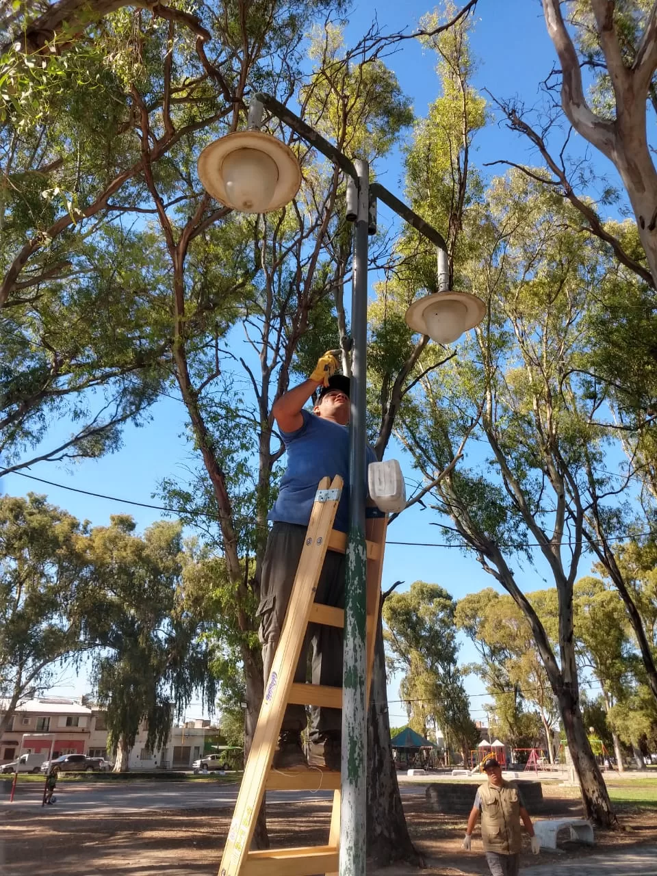 Equipos de espacios verdes, alumbrado y mantenimiento edilicio, dependientes de la Secretaría de Planeamiento, Obras y Servicios Públicos, están realizando trabajos de mantenimiento en diferentes espacios públicos de Carmen de Patagones.