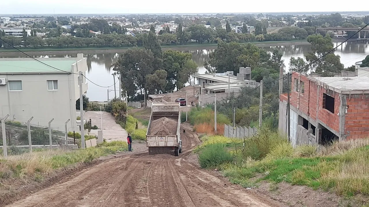 En el barrio Villa del Carmen se comenzaron tareas de relleno y nivelación en distintas arterias, trabajos que se realizan con máquinas cargadoras, motoniveladora, camiones volcadores y regador.