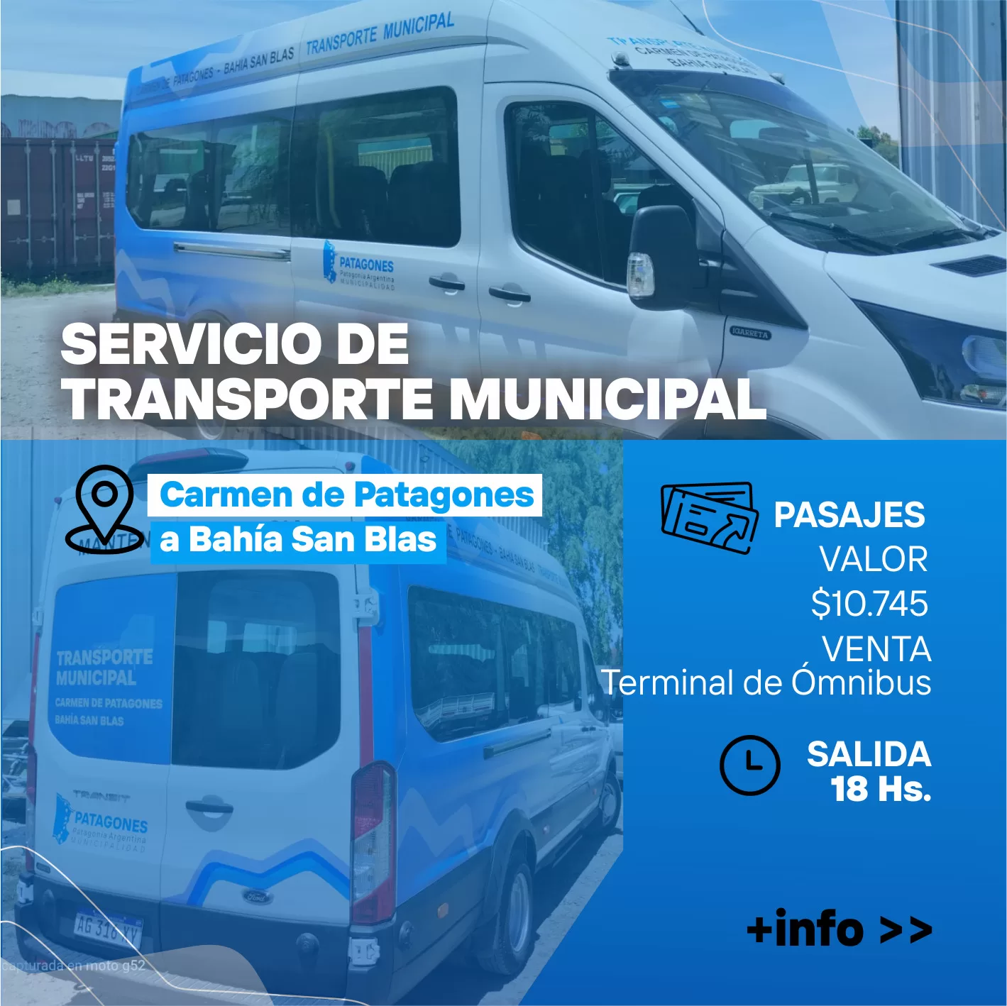 Comenzó a funcionar el servicio de transporte municipal que une la ciudad de Carmen de Patagones con Bahía San Blas y viceversa, con paradas intermedias.